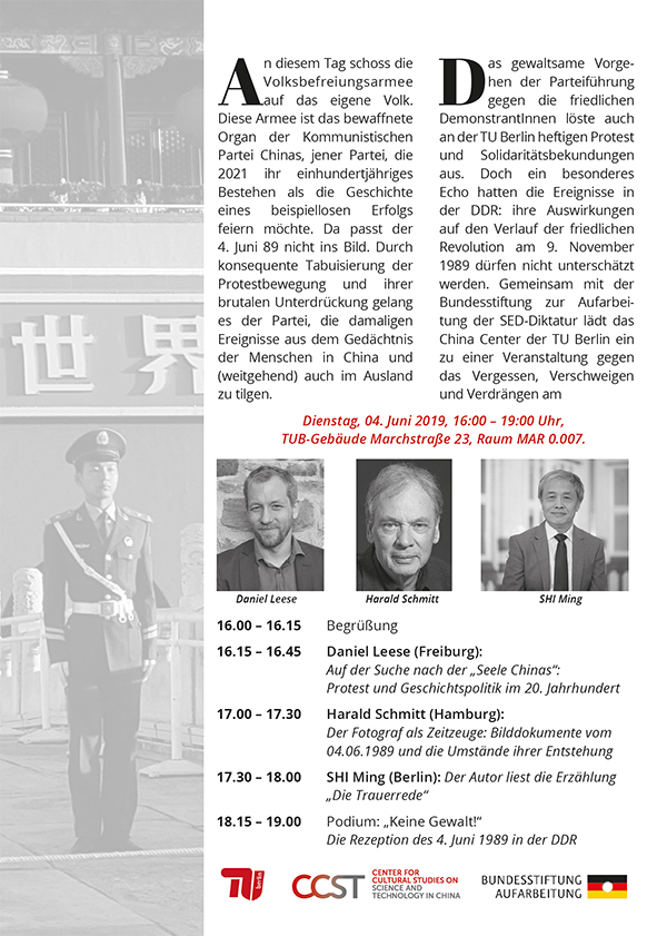 Beijing, am Platz vor dem Tor des Himmlischen Friedens An diesem Tag schoss die Volksbefreiungsarmee auf das eigene Volk. Diese Armee ist das bewaffnete Organ der Kommunistischen Partei Chinas, jener Partei, die 2021 ihr einhundertjähriges Bestehen als die Geschichte eines beispiellosen Erfolgs feiern möchte. Da passt der 4. Juni 89 nicht ins Bild. Durch konsequente Tabuisierung der Protestbewegung und ihrer brutalen Unterdrückung gelang es der Partei, die damaligen Ereignisse aus dem Gedächtnis der Menschen in China und (weitgehend) auch im Ausland zu tilgen.