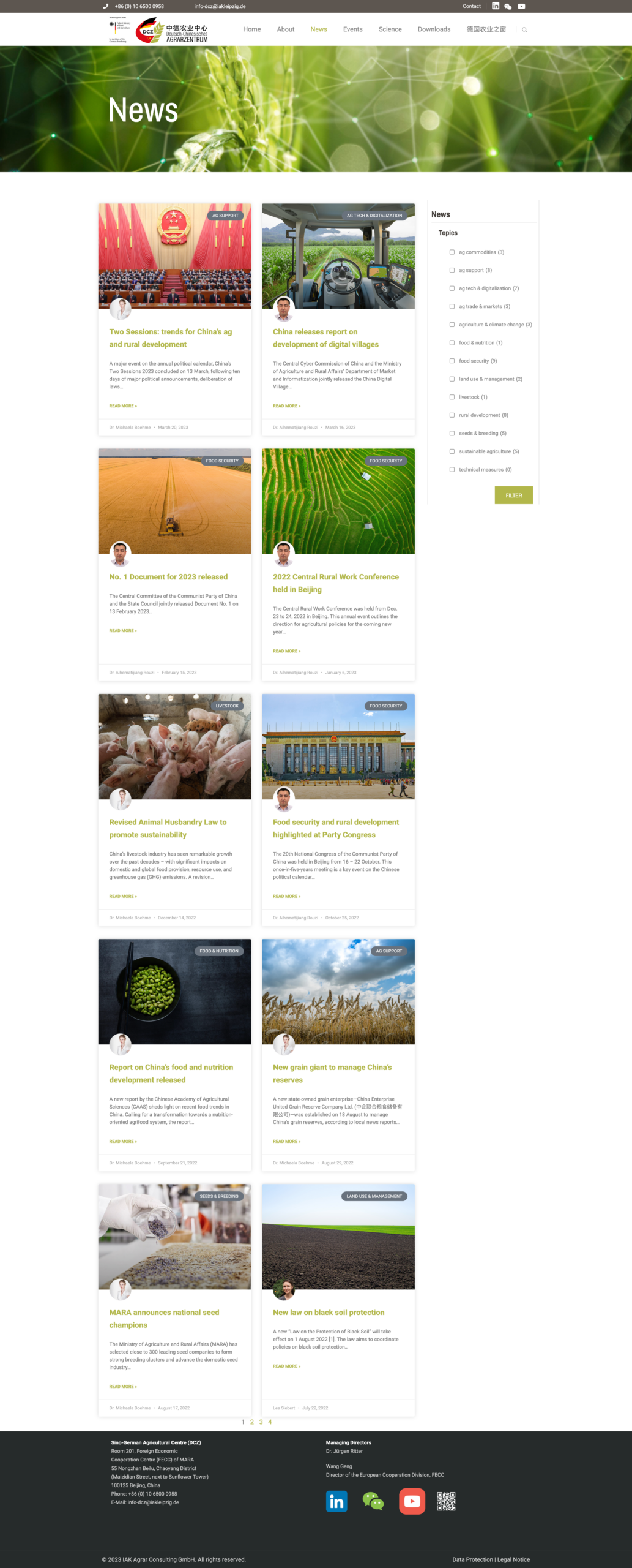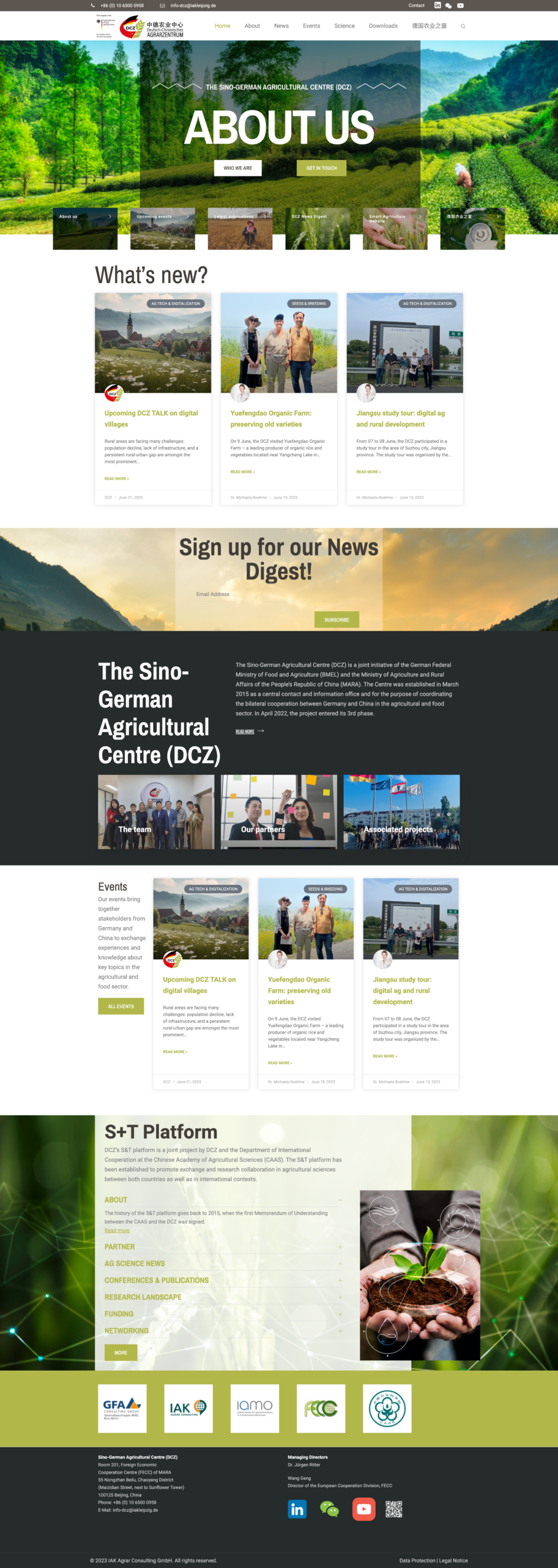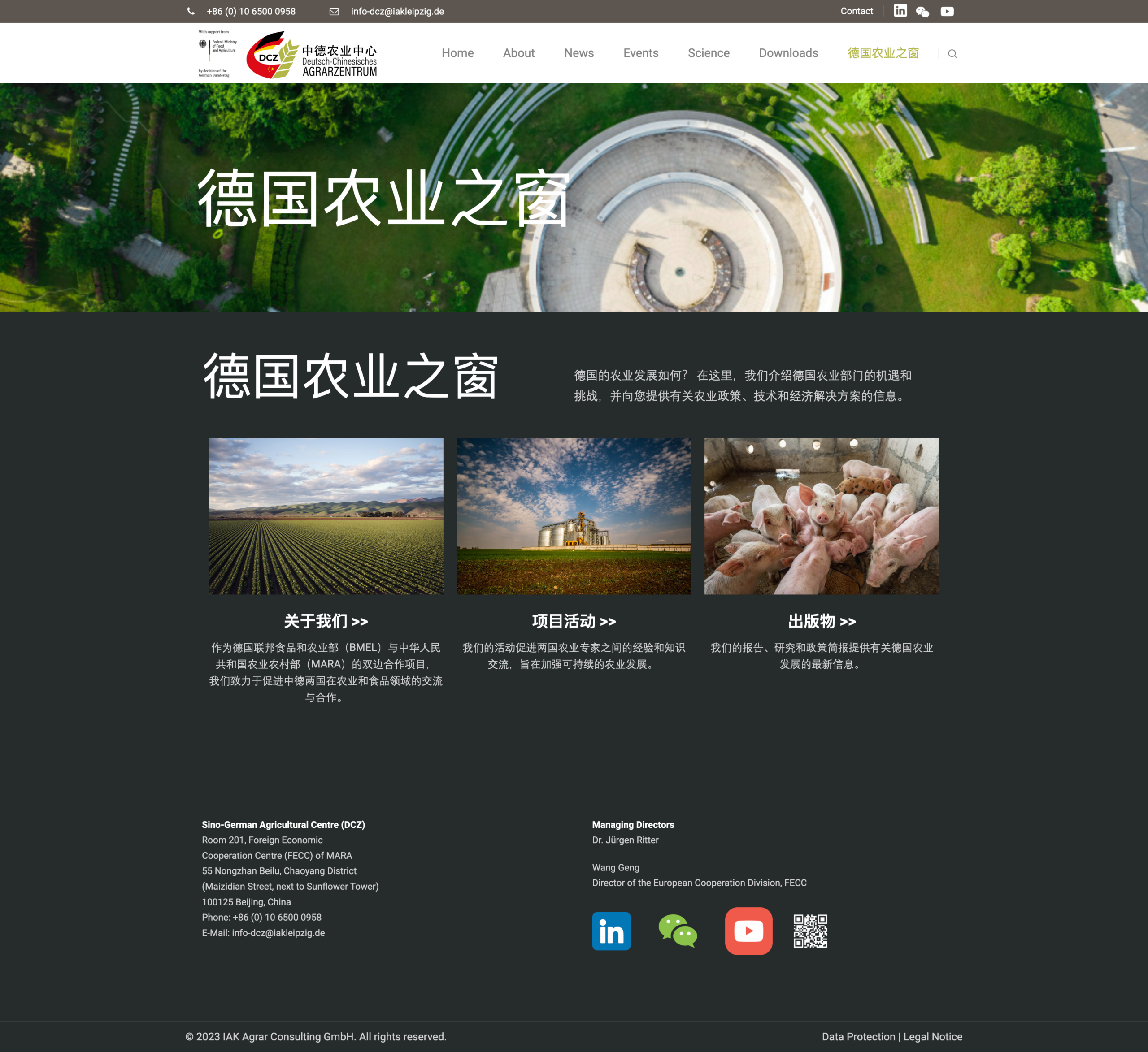 In March 2015, the DCZ was established as a central contact and information platform in charge of coordinating the bilateral cooperation between Germany and China in the agriculture and food sector. In April 2022, the project entered its third phase.